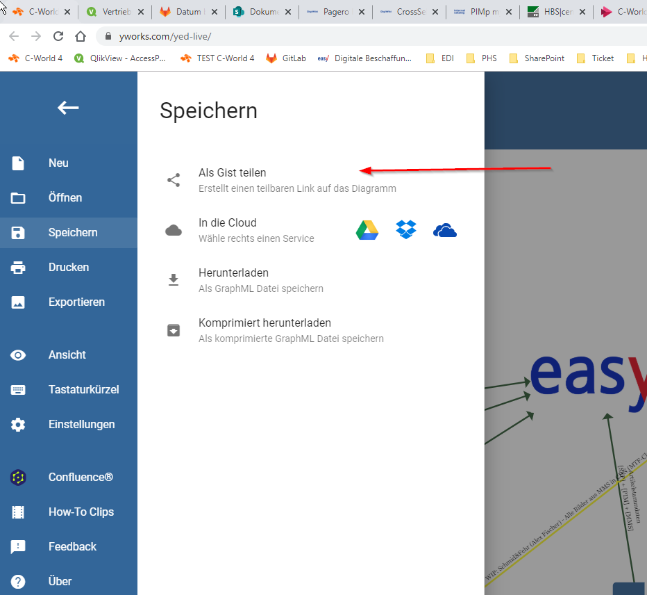 b) Remove any personal data from your graph and either share it with us as gist link or download the file in yEd Live by clicking "Menu" -> "Save" -> "Download". Then you can upload the GraphML to this forum as mentioned in Thomas' comment, or maybe send it directly via mail.