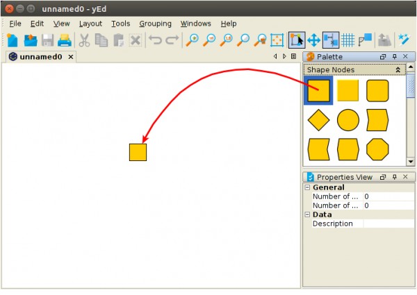 yEd offers several ways for creating new elements. The most obvious one is dragging a template from yEd's palette into yEd's editor area: