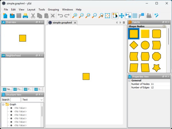 So, if you open a GraphML file that was not created in yEd, yEd is able to read only the structure of the graph from said file but nothing else. In such a case, yEd will use default values for the style, location, and size of all nodes. This means all nodes will look the same, have the same size, and will be located at the same point.
